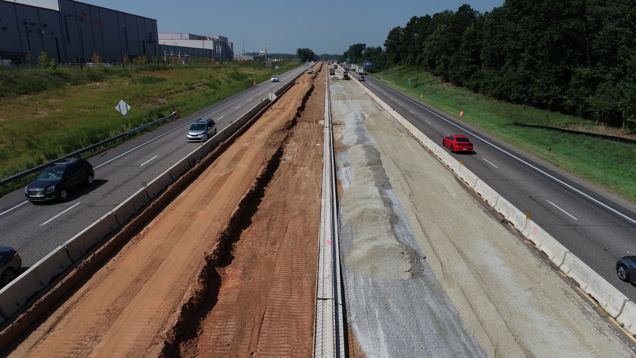 The I-85 widening project is a 2-year GDOT design-build project that widens 13 miles of interstate from US 129 to US 441. Throughout the project, our Roadway Division will lay over 416,000 tons of GAB and approximately 20,400 LF of drainage pipe. Our Structures Division will construct two bridges, two MSE walls totaling almost 8,500 square feet, and over 900 linear feet of 25-foot-tall noise wall. Our Asphalt Division will mill over 504,000 square yards and lay approximately 484,000 tons of asphalt.